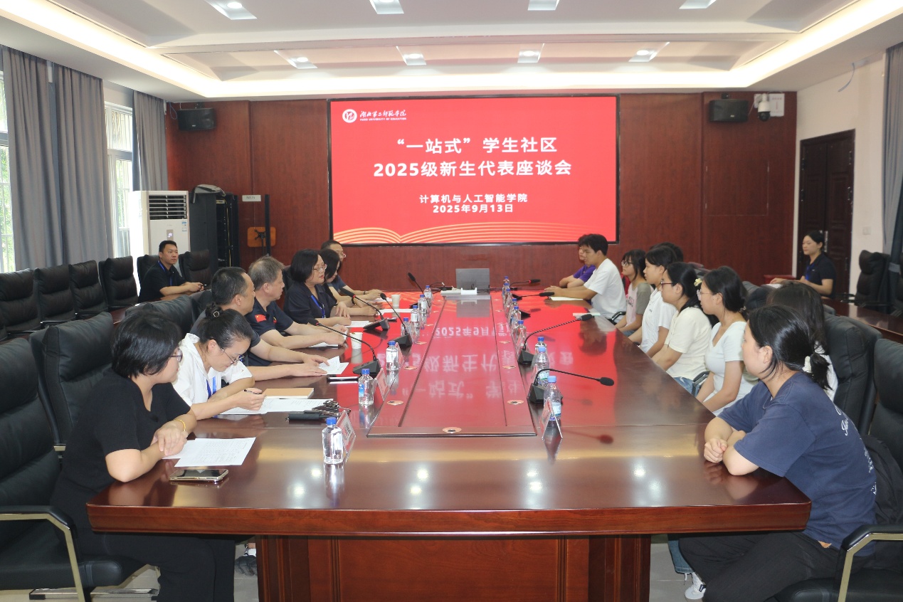 (通讯员:廖航)9月13日,学校党委副书记胡兴到计算机与人工智能学院参加“一站式”学生社区2025级新生代表座谈会,深入了解同学们的学习生活状况,倾听大家的心声,并送上学校的关怀与鼓励。学院领导班子成员、相关辅导员及部分学生代表参加了座谈,会议由学院党委书记陈宇主持。