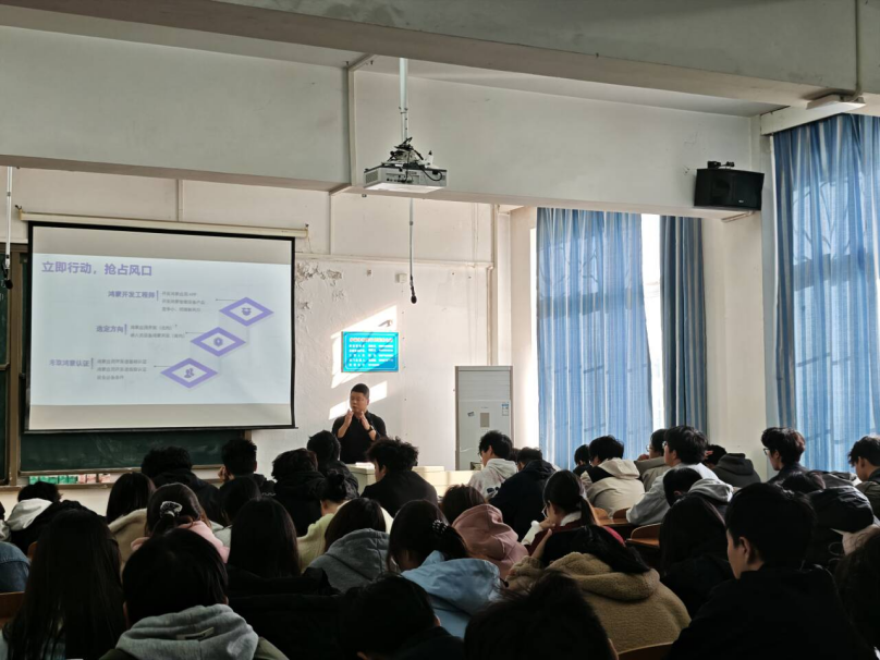 本网讯(通讯员 张煜)2025年11月12日,计算机与人工智能学院以 “新生看光谷” 活动为契机,特邀鸿蒙创新中心工作人员到校,为2025级新生开展“方阵数智 鸿蒙人才定向培养计划”专题宣讲。活动聚焦数智领域人才需求,为新生职业规划提供清晰指引,切实推动学院育人工作与产业需求精准对接。