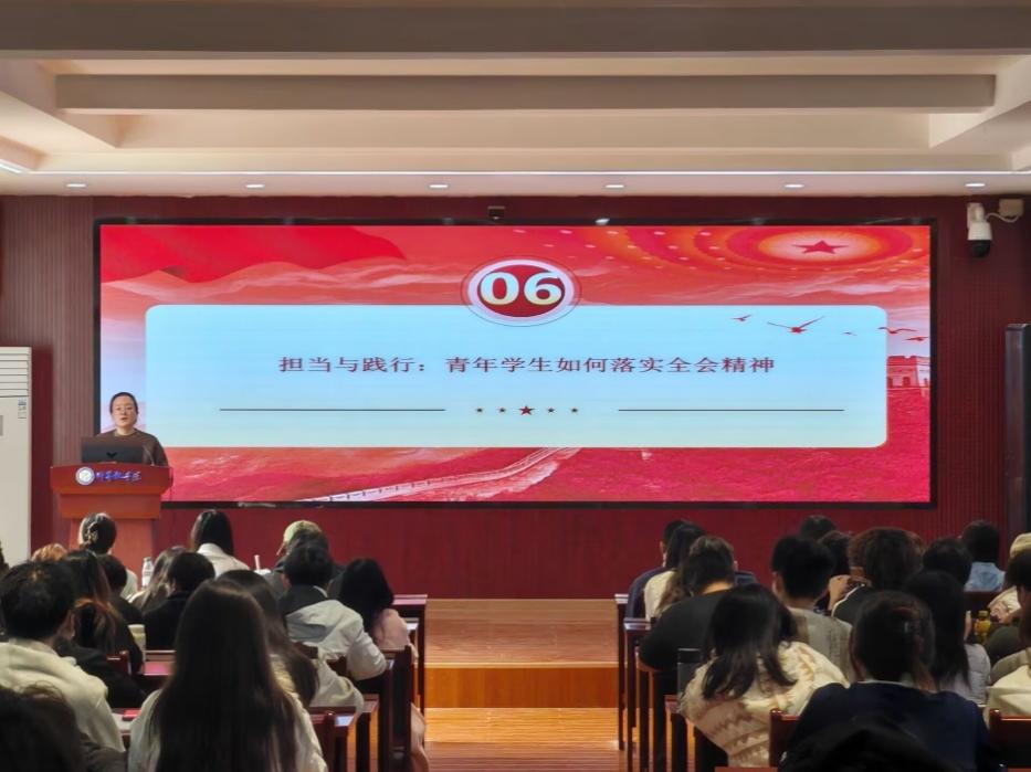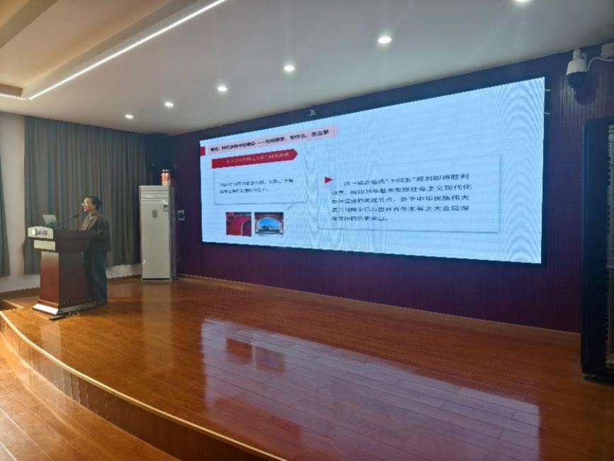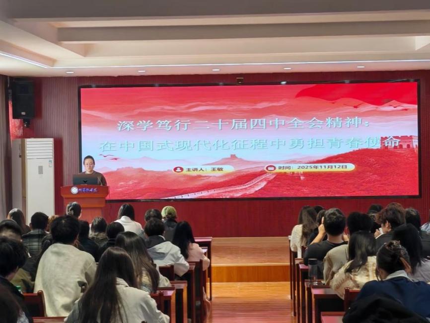 授课中,王敏老师特别强调青年一代的时代使命。她结合党的奋斗历程与未来发展蓝图,鼓励全体学员要深学笃行党的创新理论,从全会精神中汲取奋进力量,将个人理想融入国家发展伟业,在中国式现代化的广阔舞台上勇担重任,书写无愧于时代的青春华章。课程重点围绕党的二十届四中全会的召开背景与核心意义展开。