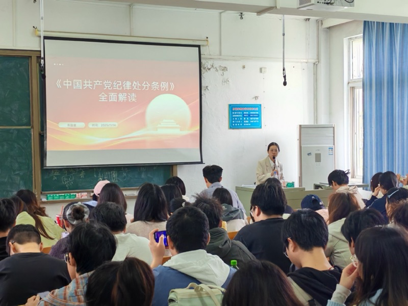 郑国媛老师从党的纪律建设体系入手,系统讲解了从警告、严重警告,到撤销党内职务、留党察看,直至开除党籍等五个层级的纪律处分,并结合当前全面从严治党形势进行了深入阐释。她强调,党的纪律是党的生命线,是全体党员必须遵守的行为准则,每位追求进步的青年学子都要深刻认识纪律的严肃性和权威性。