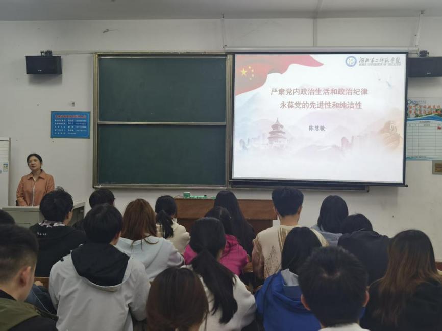 授课过程中,陈慧敏老师结合典型案例,深入剖析了当前党内政治生活中需要注意的突出问题,引导学员们深刻认识到,严格遵守党内政治生活制度、严守政治纪律,是每一名入党积极分子成长为合格共产党员的必由之路。她勉励全体学员要强化政治意识、规矩意识,在日常学习生活中自觉以党章党规党纪为遵循,认真参加组织生活,主动接受监督约束,不断锤炼政治品格、提升政治素养,以实际行动向党组织靠拢,努力成为政治坚定、纪律严明、作风优良的合格党员。
