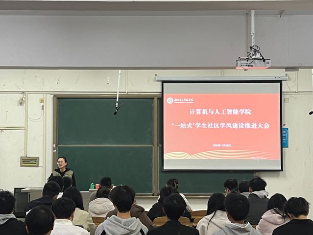 本网讯(通讯员张儒雅)为筑牢育人根基,营造勤学笃行的优良学风,11月28日中午,计算机与人工智能学院召开学风建设推进大会,学院党委副书记王敏、全体辅导员及各年级学生骨干参会。 会上,辅导员邓重阳老师首先通报当前学风建设情况,直指课堂缺勤、专注度不足等突出问题,并结合计算机类专业人才培养要求强调,课堂是知识传授的主阵地,必须以铁的纪律守护教学秩序。