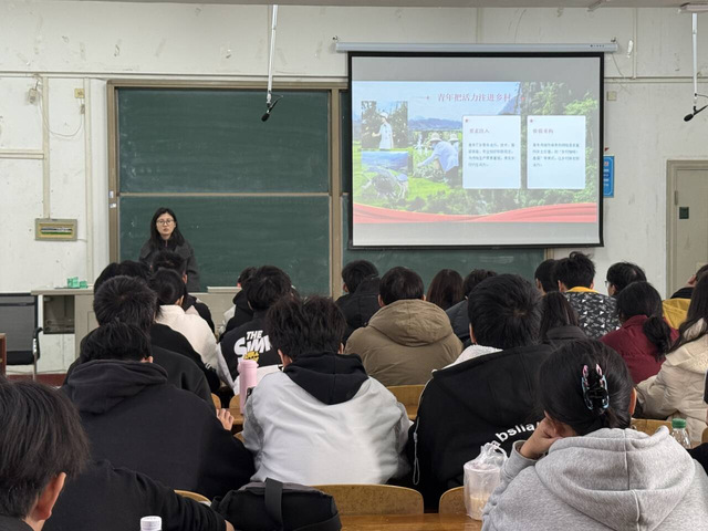 宣讲中,团干宣讲员张儒雅老师以“全会精神领航:新时代青年扎根乡土,点亮乡村振兴”为主题,结合全会提出的“加快农业农村现代化”要求,分享了大学生运用AI技术助力乡村数字教育、农产品电商推广的案例,鼓励学子传承学校“百折不挠、追求卓越”的二师精神,将专业所长融入乡村振兴实践。