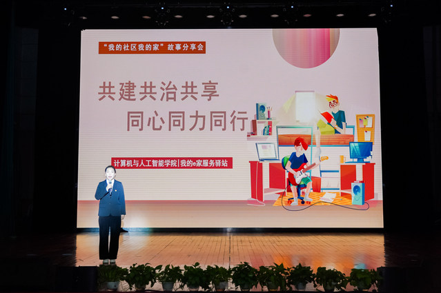 本网讯(通讯员 郑国媛)近日,我校举办2025年“一站式”学生社区年终总结表彰大会。计算机与人工智能学院“我的e家”服务驿站作为学生社区治理典型代表,由驿站学生代表王琬祎等8名学生在会上作分享交流,生动展现了我院以党建引领学生社区共建共治共享的实践成果。